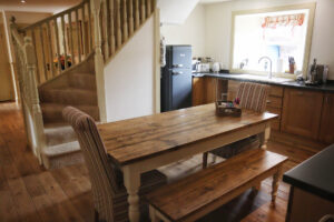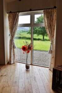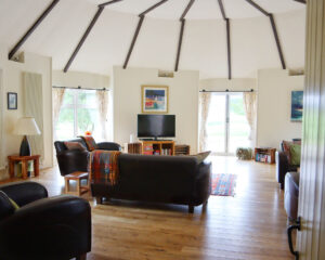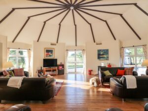 At the heart of the house is the spectacular 28ft round sitting room. Flexible seating areas offer space for everyone and there are patio doors leading onto the terrace and the outdoor picnic table. West facing, this is the perfect spot to enjoy amazing sunsets, or use the binoculars provided to spot some of the birds of prey or other wildlife around.